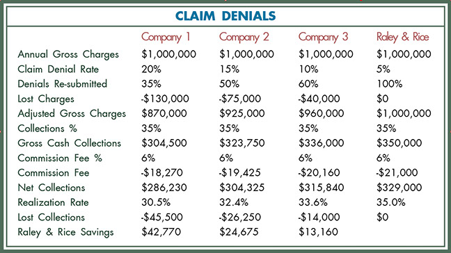 client’s claim denials. The end result is an aging accounts receivable losing value as